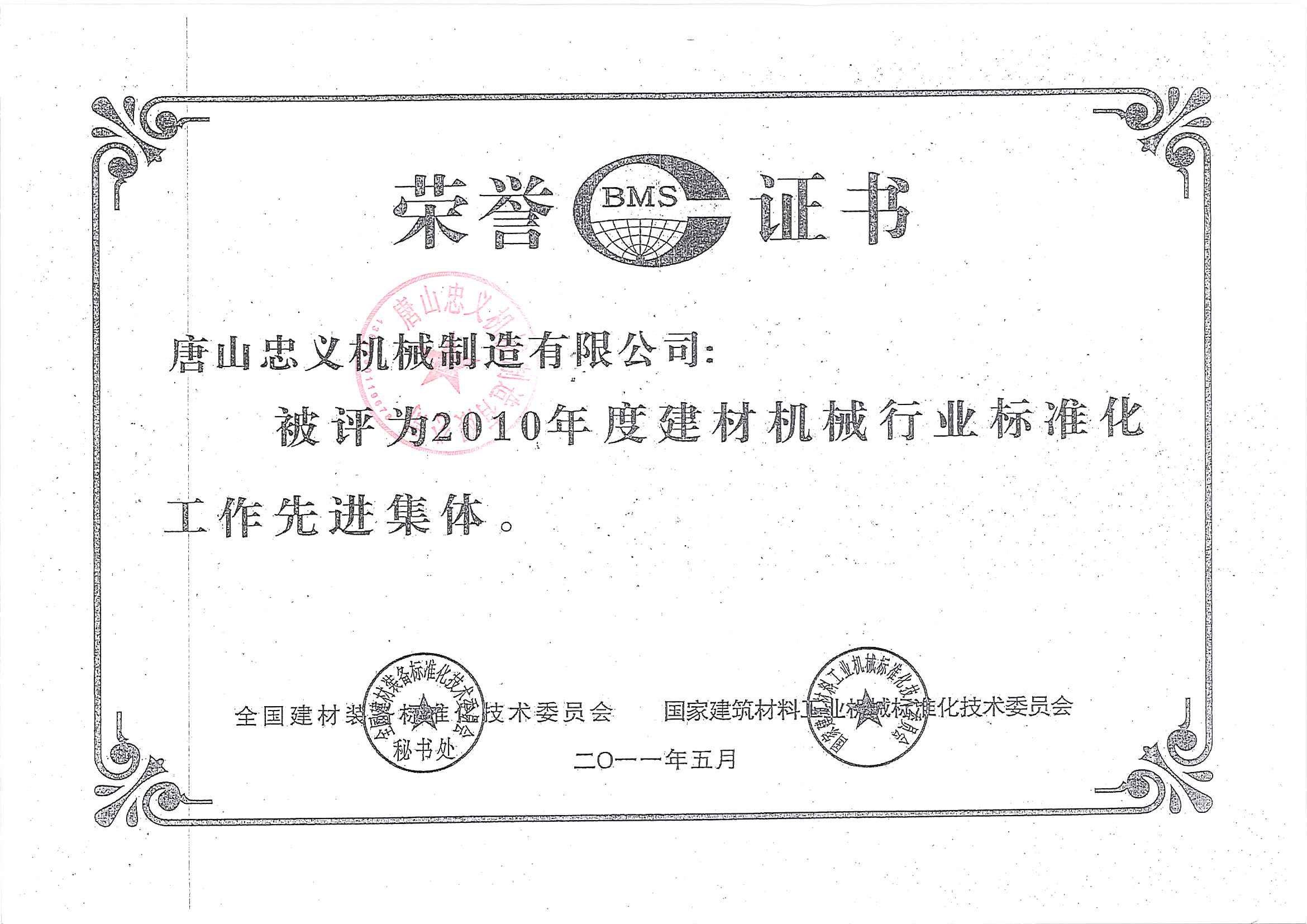 建材標準行業榮譽證書